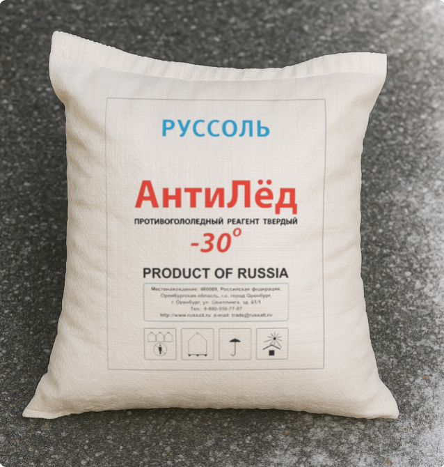 Для надлежащего хранения противогололедных реагентов мешки необходимо держать в сухом, закрытом помещении, защищённом от прямой влаги и осадков.